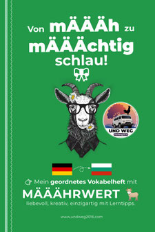 Dieses Vokabelheft wurde mit viel Liebe zum Detail gestaltet auf 140 Seiten voller Määährwert.